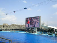 イルカが跳ねたりシャチが人間を乗せたり、シーワ−ルド系の水族館は観客に根強い人気があります。しかし、動物(イルカ、シャチ、他海獣類)の入手が自然保護団体の反対で難しいのが現状です。