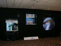 会場はシーン・・・確かにイルカのショウ・プールに要するエネルギー消費は多大なものであり、又、消毒方法にも問題がある。