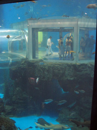 多分目玉の《大水槽》は総水量約700トン。真ん中をチュ―ブで貫いたトンネル状になっている。多分この形式のトンネル水槽は、他に無いと思うが、その割には効果が薄いのが残念。